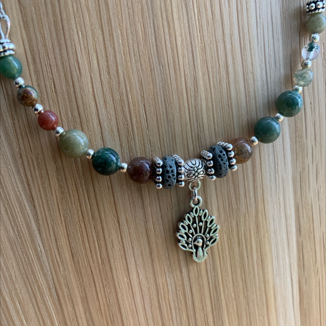 👉🏼 Pierres en 4, 6, et 8mm. Métal argenté sans nickel pendentif Paon. 🦚