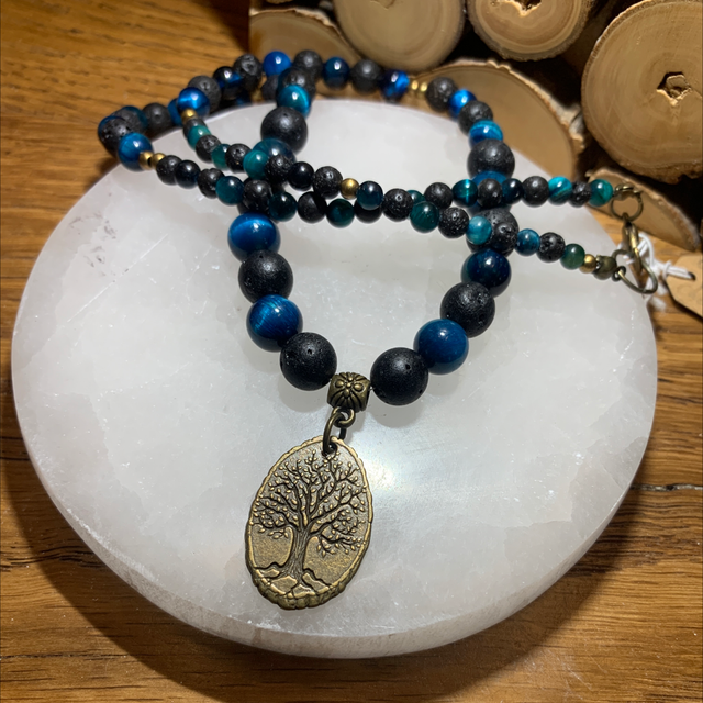 👉🏼 Collier en pierre allant de 4 à 8mm en dégradé. Métal bronze sans nickel et pendentif arbre de vie.