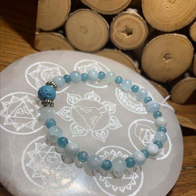 👉🏼 Pierres de 4 et 6 mm. Pierre de lave teintée bleue 8mm. Décoration argentée garantie sans nickel.